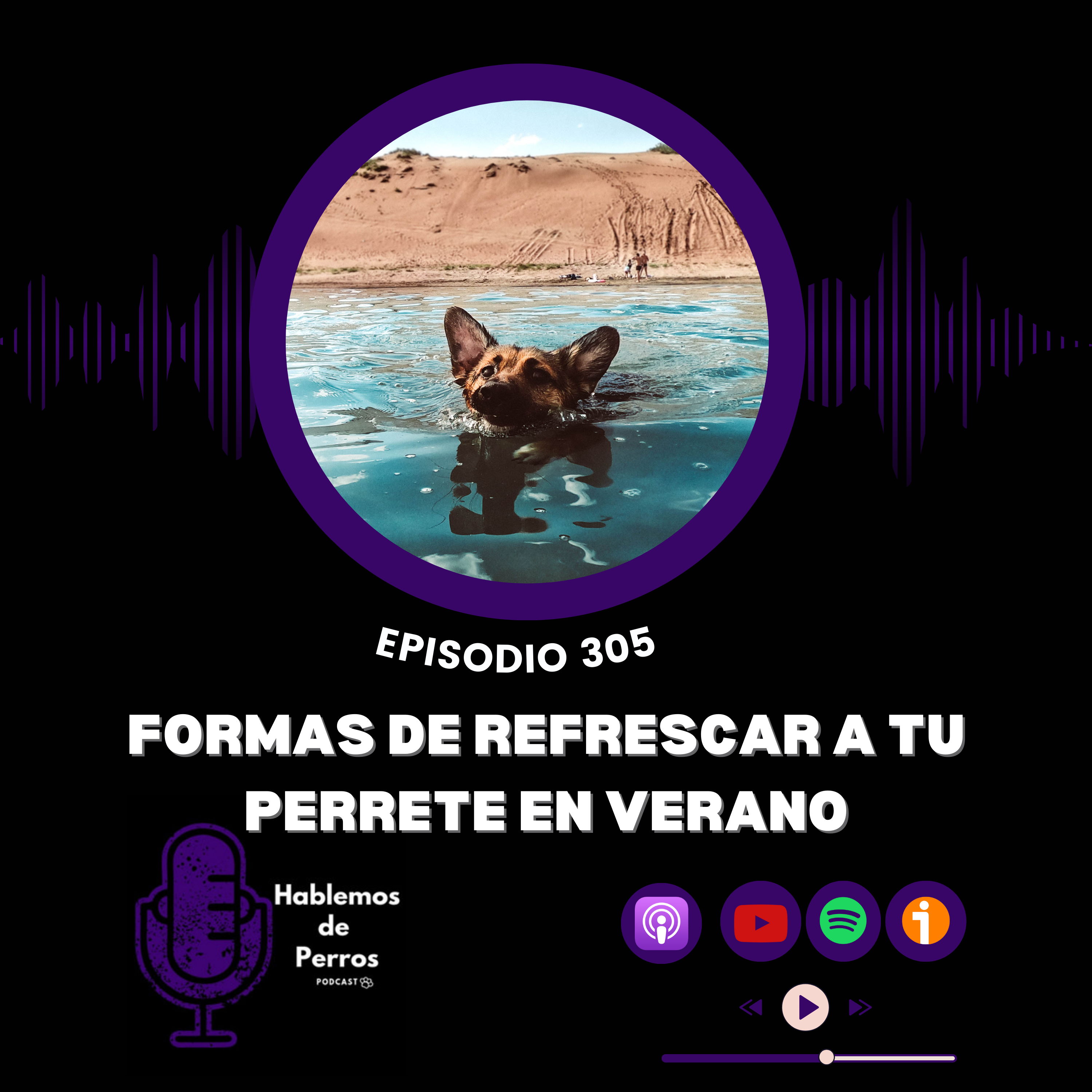 ¡Hola a todos y bienvenidos al episodio número 305 de Hablemos de Perretes! En este podcast, quiero ayudarte a entender a tu perro, educarlo, conocerlo y, sobre todo, a eliminar ese «pero» de la frase «mi perro es muy bueno, pero…» para que pase a ser «mi perro es muy bueno y punto». Todos los perros son muy buenos, solo que a veces tienen problemitas de comportamiento que, si les ayudamos a solucionar, terminan siendo perros absolutamente perfectos. Hoy, vamos con un episodio veraniego: consejos de verano para perretes. Estoy grabando esto muriéndome de calor, así que entiendo perfectamente lo que están pasando nuestros perros. Aquí van varias formas de refrescar a tu perrete en verano. Primero, asegúrate de tener agua fresca siempre disponible. Puedes ponerle cubitos de hielo o agua fría de la nevera para mantenerla fresca. Un truco que me encanta es hacer cubitos grandes en un táper con juguetes y premios dentro. Esto no solo les ayuda a refrescarse, sino que también les da un entretenimiento extra. Otra idea es mojarles la barriguita y las almohadillas. Puedes hacerlo con un trapito húmedo de agua fría de la nevera, o con un pulverizador lleno de agua fresca. Si tienes jardín o terraza, una piscina pequeña para perros con un par de dedos de agua es ideal para que se remojen las paticas y la barriga. Recuerda que no sirve de mucho echarles agua en el lomo, es más efectivo mojar las zonas mencionadas. Venden colchonetas refrescantes para perros, aunque no las he probado, parecen una buena opción. Además, poner un ventilador ayuda mucho, así como crear corrientes de aire en casa abriendo ventanas y puertas. Baja las persianas para evitar el sol directo y refresca un poco el suelo tirando un poco de agua si ha estado al sol todo el día. También, puedes ofrecerles helados para perros, yogur frío o huesos congelados, que además de refrescarlos, les encantan. Si te ha gustado este episodio de consejos de verano para perretes, no olvides darle a «me gusta», dejar una valoración de cinco estrellas en Spotify, y compartirlo con otros amantes de los perros que puedan beneficiarse de estos consejos. Muchísimas gracias por estar ahí un día más, nos escuchamos en el próximo episodio. ¡Adiós!